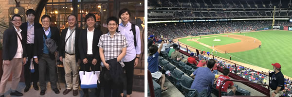 学会後は、まだカウボーイ文化の残るダラス観光やMLB観戦などを楽しみました。テキサス州北部であるダラス近郊には広大な牧草地が広がっており、恵まれた環境の中で育てられた最高品質のステーキも、絶品でした。写真は他大学の先生方とメキシコ料理を楽しんだものです。海外学会ではありますが、このように国内の先生方との交流を通じて、人との大切な繋がりも得ることができました。